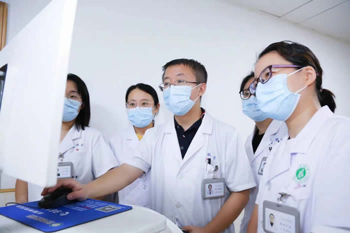 姜廷枢(右三)与同事讨论患者病情