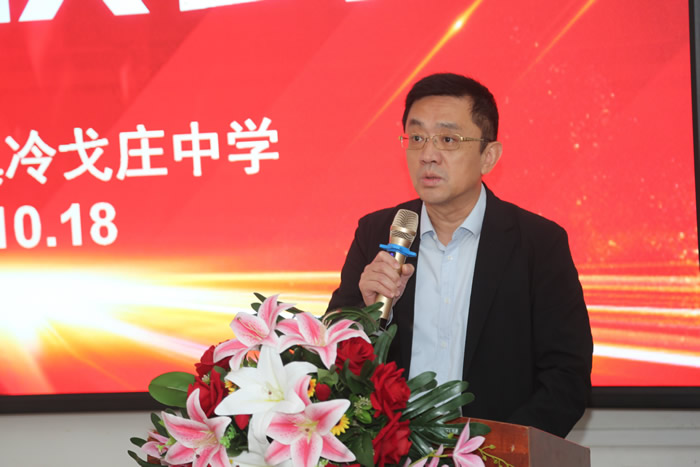 冷戈庄中学校长李洪远致辞,对各位来宾的到来表示热烈的欢迎。