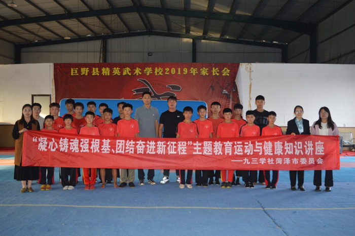 为推动主题教育活动开展,积极落实“五大行动”要求,10月27日下午,九三学社菏泽市委会赴巨野县龙堌镇耿庄村小学和耿庄村青少年武术研学基地,开展“凝心铸魂强根基、团结奋进新征程”主题教育运动与健康知识讲座,九三学社社员、国家级运动健将、国家级裁判员、国家一级教练员卜祥帅担任授课教师,社菏泽市委会秘书长李萃玮、社菏泽市委会机关工作人员及70余名学生参与活动。