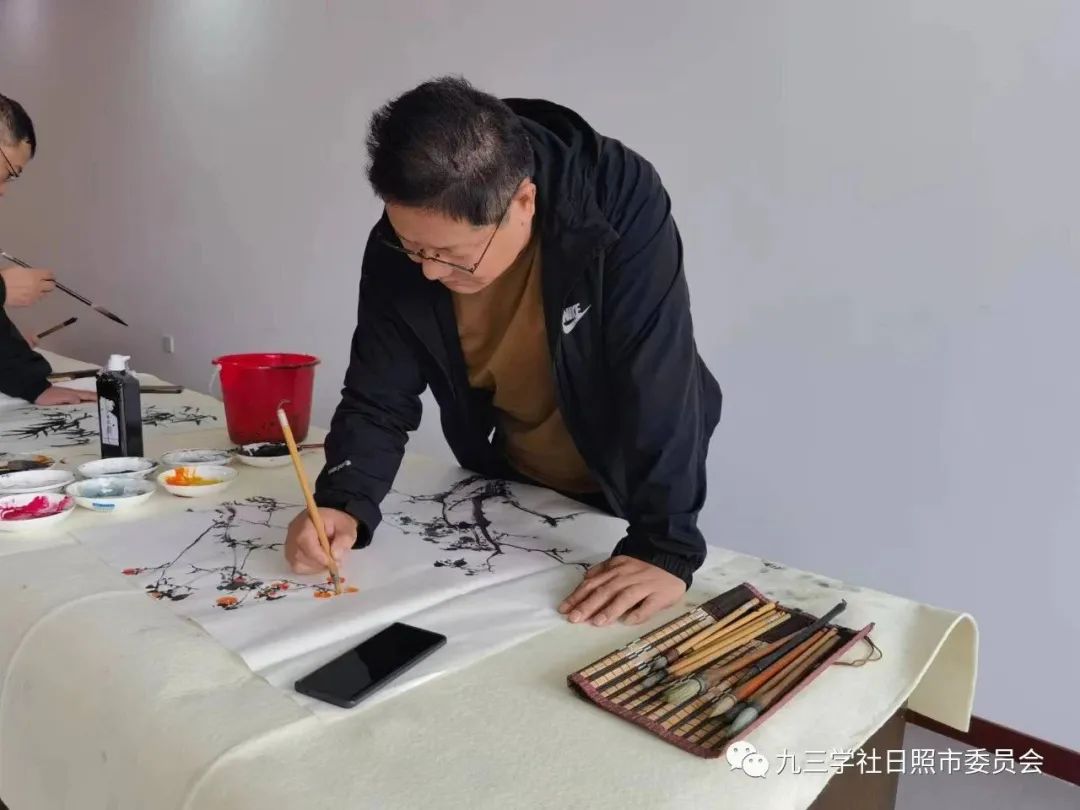 九三学社日照市委会秘书长赵英华出席活动,第六支社部分社员及九三学社日照书画院特聘书画家参加活动。