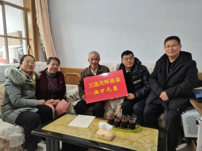 12月11日,九三王选关怀基金会专职副秘书长赵鑫,山东省人大财经委副主任、九三学社山东省委会秘书长岳鹏一行先后到枣庄市、济宁市汶上县,看望慰问身患重病的社员涂乐道、刘海峰同志,并分别送上了九三学社中央原主席、王选基金会理事长韩启德亲笔签名的慰问信和5万元慰问金。