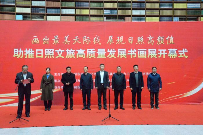 为深入学习贯彻中共二十大精神,推动“凝心铸魂强根基、团结奋进新征程”主题教育走深走实走心,传递日照绿色低碳高质量发展好声音,记录日照谋振兴、促崛起、求跨越的美丽画卷,推动日照文旅高质量发展,2023年12月28日上午,九三学社日照市委会联合日照市政协文化文史和学习委员会,在日照市图书馆举行“画出最美天际线 展现日照高颜值”助推日照文旅高质量发展书画展开幕式。