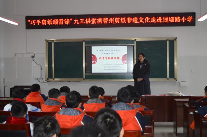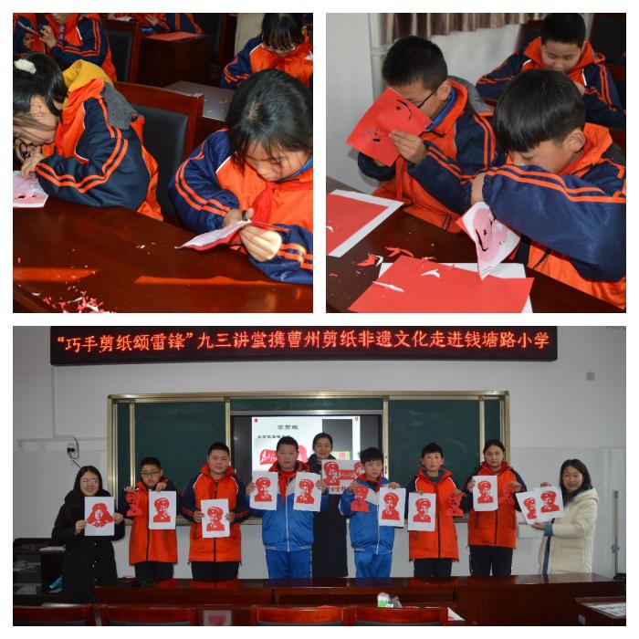 为传承非遗技艺,学习雷锋精神,3月1日,九三学社菏泽市委会赴开发区钱塘路小学开展“巧手剪纸颂雷锋”活动,九三学社菏泽市委员会委员、曹州剪纸传承人周艳丽受邀授课,社菏泽市委会机关及学校师生50余人参与活动。