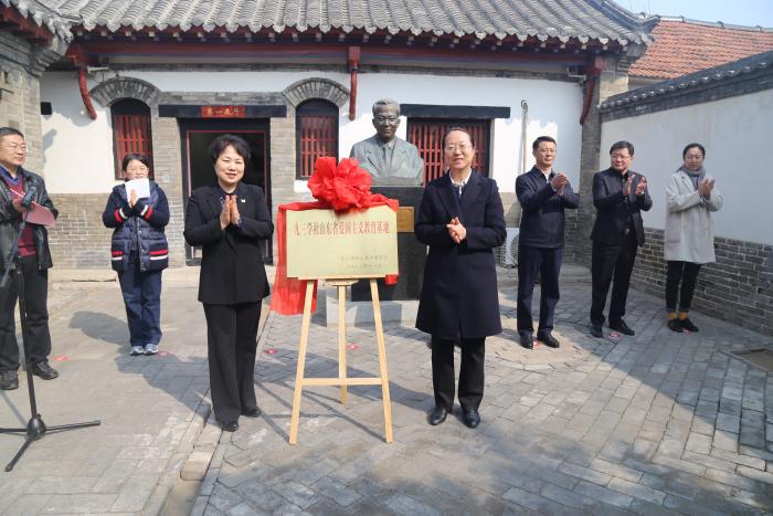 3月14日,“九三学社山东省爱国主义教育基地”揭牌仪式在潍坊张雪岩纪念馆举行。省人大财经委副主任、九三学社省委会秘书长岳鹏,中共潍坊市委统战部分管日常工作的副部长郝信富,九三学社潍坊市委会主委、潍坊市大数据局局长于冬菊出席揭牌仪式。九三学社潍坊市委会副主委赵同祥主持揭牌仪式。 岳鹏在揭牌仪式上致辞并指出,2023年九三学社省委会贯彻落实习近平总书记关于加强爱国主义教育的指示要求,深入挖掘社内资源,开展了社内爱国主义教育基地建设工作,将张雪岩纪念馆列为首批教育基地,旨在进一步发挥纪念馆凝聚共识、资政育人的重要作用。她希望社潍坊市委会以此为契机,不断丰富展示内容,创新展览方式,增强纪念馆的吸引力和影响力,同时不断加强市委会自身建设,切实履职尽责,以九三学社所能服务党委政府所需,为建设更好潍坊、为现代化强省建设贡献力量! 社省委会宣传部四级调研员宋丹丹宣读了九三学社山东省委员会《关于命名第一批九三学社山东省爱国主义教育基地的决定》,岳鹏、于冬菊共同为“九三学社山东省爱国主义教育基地”揭牌。