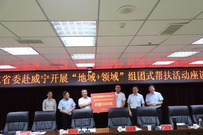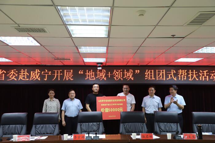 14日,李宗涛率队赴威宁县开展调研帮扶活动,先后到九三中学、威宁县中医院、一道长通新能源有限公司开展调研,并在威宁县人民政府举办捐赠仪式和交流座谈会。九三学社社员王文生、蒋作栋、韩丽彬、董涛、李培伦分别代表民营联合科创投资(山东)有限公司、山东中德栋梁集团有限公司、山东罗开佳知善农业科技有限公司、山东天用智能技术有限公司、山东力诺瑞特新能源有限公司向威宁县盐仓文化站和威宁九三中学捐赠少儿书籍2505本,爵士鼓、电子钢琴各2套,联想电脑10台,厨房智能设备1套,太阳能热水器1批,共计价值24.5万元。捐赠仪式后,与会人员就如何助力威宁县高质量发展与威宁发改局、卫健局、教育局、农业农村局、投资促进局、能源局等部门进行深入座谈交流。