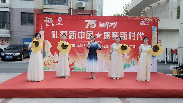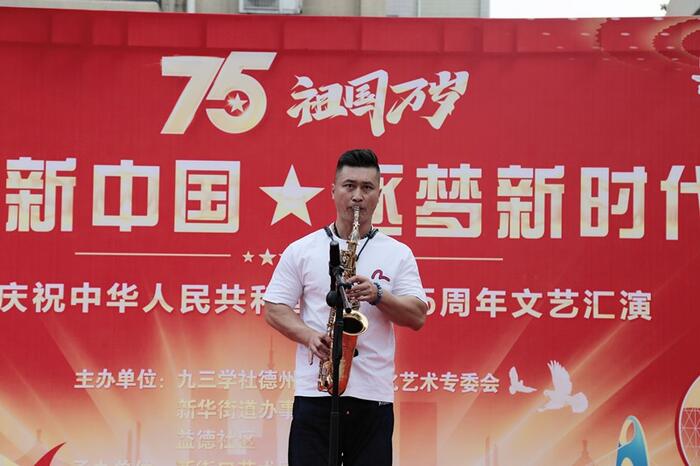 为庆祝新中国成立75周年,9月28日,九三学社德州市委会文化艺术专委会联合德城区新华街道办事处、益德社区举办迎国庆文艺汇演活动。社市委会文化艺术专委会主任梁丽霞、宣传工委会主任薛莲,新华街道办事处副主任蔡世强等街道、社区领导参加。