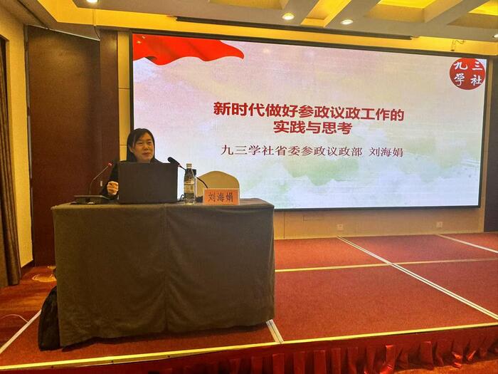 刘海娟结合多年来从事参政议政工作的经验,围绕如何撰写社情民意信息,做好参政议政工作,作了《新时代如何做好参政议政工作的实践与思考》的报告。报告具有很强的知识性、针对性、指导性和实用性。参会社员对参政议政工作有了更清晰的了解,为做好今后工作指明了方向。