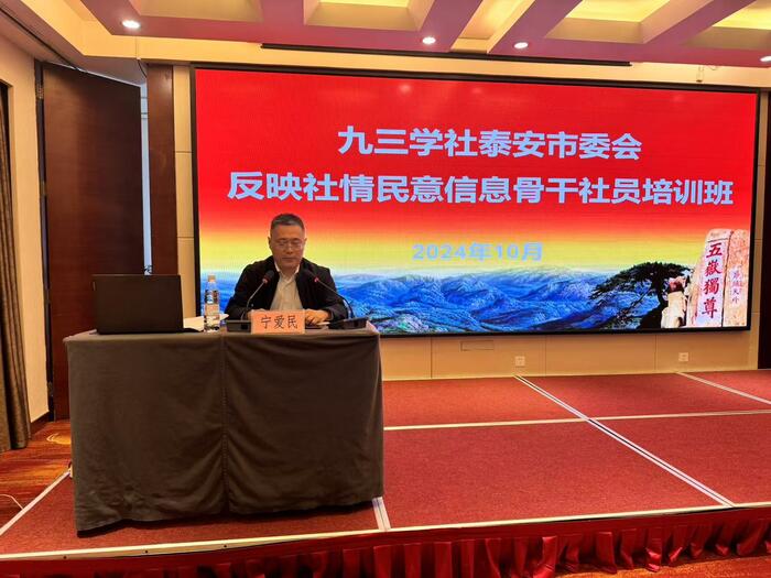10月17日,九三学社泰安市委员会举办反映社情民意信息骨干社员培训班。山东省政协委员、九三学社山东省委会参政议政部部长刘海娟,泰安市政协办公室副主任宁爱民受邀作专题辅导。泰安市人大常委会副主任、九三学社市委会主委王淑玲出席会议并讲话。九三学社市委会副主委孙启凯、刘峰、肖玲,秘书长郭启明参加会议。