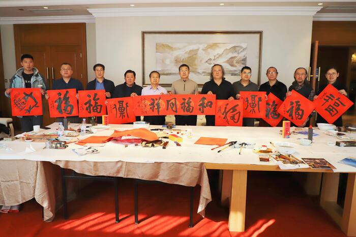 1月19日,九三学社潍坊市委会开展新春送福活动。九三学社潍坊市委会副主委、社潍坊书画院院长赵同祥带队,社市委会秘书长尹敬国,社书画院副院长朱佑华、刘兆彬、董伟国、路波,秘书长高福彬,院委何谷等参加。活动现场,书画家们书写300余副春联或福字,送“福”到家。(九三学社潍坊市委员会 孙三鹏)