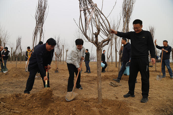 为助力国家生态园林城市创建,响应市委、市政府“每人能种三棵树、一个单位一片林”的号召,深入推进“德州九三‘四进工程’”品牌建设,3月13日,九三学社德州市委会组织近40名社员、入社积极分子,到丁东水库开展“守护水源地 共建同心林”义务植树活动。社市委会主委任桂英,副主委姚汝勇、张自坤,秘书长王海龙参加。市水利局三级调研员董书芳,市丁东水库运行维护中心主任赵松等陪同。