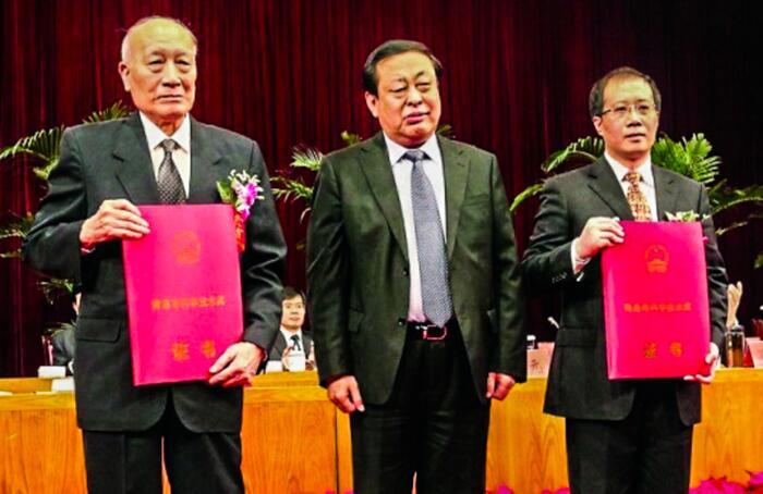 2010年3月19日,在全市科学技术奖励大会上,刘瑞玉(右一)院士获青岛市科学技术最高奖 ,图片摘自网络。 2010年3月19日,2009年度青岛市科学技术奖励大会召开。中国科学院海洋所刘瑞玉院士荣获2009年度青岛市科学技术最高奖,这是青岛社员连续2年荣获青岛市科学技术最高奖(2008年度是文圣常院士)。青岛大学基层委隋坤艳的科研项目获青岛市自然科学二等奖;市北区基层委于旭光的科研项目获青岛市科技进步一等奖;青岛理工大学李秋义、张纪刚、金祖权和张鹏、王刚,青岛大学基层委隋庆兰各自的科研项目获青岛市科技进步二等奖;市南区基层委张相忠,青岛农大基层委李俊良,市北区基层委刘玉秋、王岩的科研项目获青岛市科技进步三等奖。(九三学社青岛市委员会 王少韬 张俊杰) |