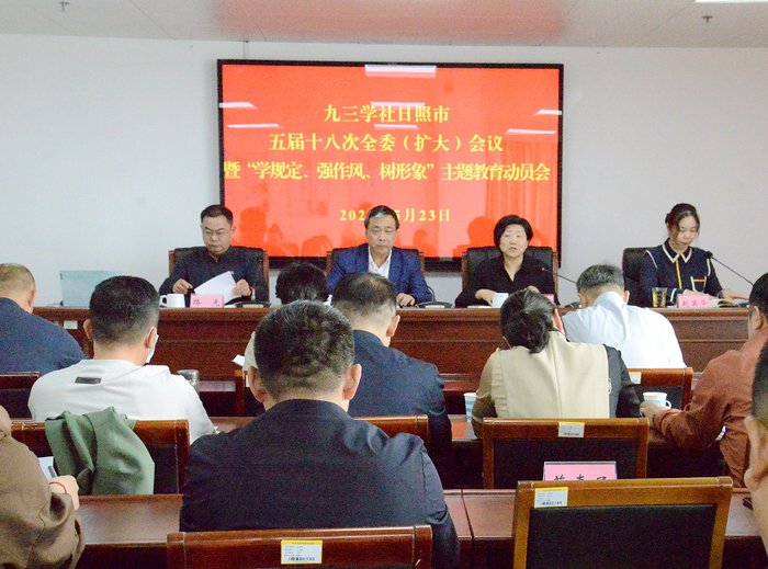 5月23日,九三学社日照市委会五届十八次全体(扩大)会议暨“学规定、强作风、树形象”主题教育动员会召开。日照市政协副主席、九三学社日照市委会主委崔维刚出席会议并讲话,社日照市委会副主委谭洁主持。社日照市委会副主委路光,秘书长赵英华,委员陈海文、王玉鹏、张雷,内部监督委员会委员,各支社主委、委员及骨干社员参加会议。