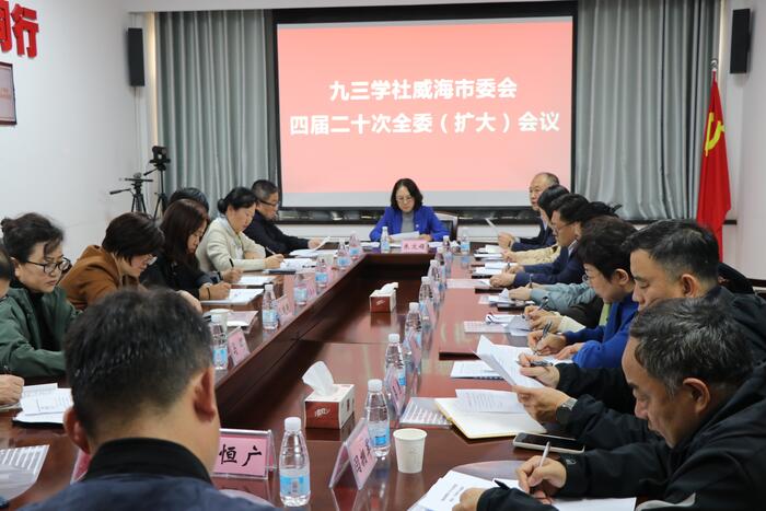 11月6日下午,九三学社威海市委员会召开四届二十次全体(扩大)会议,传达学习习近平总书记重要讲话精神、中共二十届四中全会精神,部署近期重点工作。市政协副主席、九三学社威海市委会主委朱文娟主持会议并讲话,专职副主委兼秘书长曲兴、副主委高见,部分社市委委员及支社、专委会班子成员参加会议。