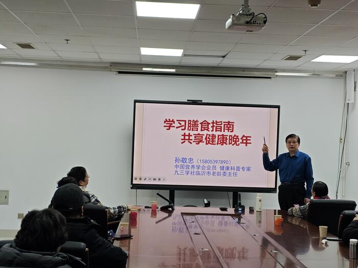 1月18日,九三学社临沂老龄工作委员会举办“九三同心科普讲堂”活动。社市委会原主委、省政府参事王启成参加,社老龄委主任孙敬忠主持。