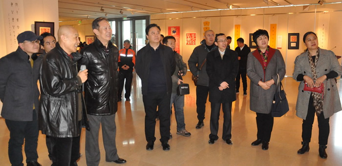 近日,由九三学社山东省委主办,九三学社烟台市委、济南市文联、海右印社、《中国篆刻家》杂志联合承办的“全面落实十九大精神•认真学习习主席用典选粹——贾鹏书法篆刻展”在烟台市群众艺术馆开幕。 九三学社烟台市委主委邹志强出席开幕式并讲话;贾鹏先生在讲话中畅谈了创作的原由和主要意图,并亲自讲解每幅作品的用语出处、艺术要点和深刻内涵。九三学社烟台市委副主委张桂德、秘书长李玲等有关同志及烟台市社员代表出席了开幕式。 展览以学习、贯彻、宣传十九大精神为主题。习近平总书记在十九大报告中强调:“文化自信是一个国家、一个民族发展中更基本、更深沉、更持久的力量。”“文化是一个国家、一个民族的灵魂。文化兴国运兴,文化强民族强。”习总书记讲话中大量引用的古典名句是中国优秀传统文化中最精彩的部分,体现了中华民族的血脉传承,闪耀着智慧光芒,寓意深邃,生动传神。本次展览精选习近平总书记在各种讲话中引用的古典名句,由九三学社成员、《中国篆刻家》杂志主编、海右印社社长贾鹏先生历时半年时间,精心创作而成。作品涉及敬民、为政、立德、修身、劝学、廉政等诸多方面,使这些经典名句更有温度,更具亲切感,将使参观者更好地汲取力量、提升境界、增进服务社会发展的动力。 本次展览,是九三学社山东省委主办的“全面落实十九大精神•认真学习习主席用典选粹——贾鹏书法篆刻展”全省巡展的最后一站,共展出作品100余件,对推动烟台市文化事业发展、更好地落实十九大精神产生了积极的促进作用。(社烟台市委) |
