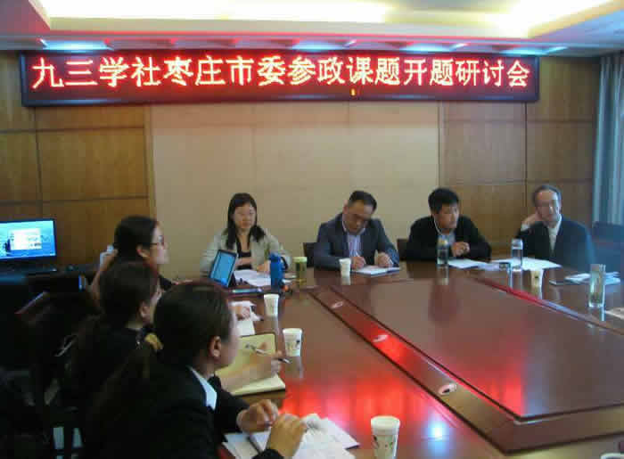 3月28日下午,九三学社枣庄市委在市政协四楼会议室召开了各基层组织参政调研课题开题研讨会。社枣庄市委主委、枣庄市政协副主席傅廷安出席会议并讲话,社枣庄市委秘书长韩梅及各基层组织分管参政议政的同志共15人参加了会议。