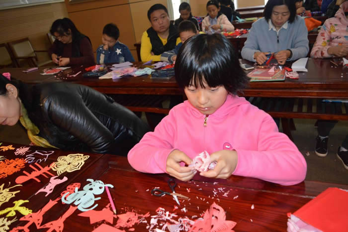 4月6日上午,在菏泽市图书馆二楼国学堂,由菏泽市中华文化促进会剪纸艺委会、九三学社菏泽市委、菏泽市图书馆主办,山东省工艺美术大师、菏泽市曹州剪纸项目非物质文化遗产传承人、菏泽市中华文化促进会剪纸艺委会会长葛秀英,和九三学社菏泽市委委员、牡丹区曹州剪纸项目非物质文化遗产传承人周艳丽主讲的剪纸艺术讲座成功举办。50余位剪纸爱好者参加了活动。 周艳丽通过ppt向大家介绍了剪纸的历史起源,剪纸的作用与发展和剪纸创作技法。