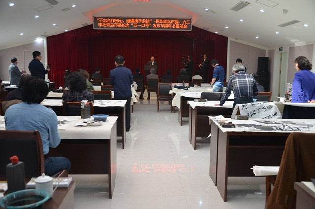 2018年4月27日,九三学社青岛市委和民革青岛市委联合举办的“不忘合作初心,继续携手前进”——纪念“五一口号”发布70周年书画笔会在民主党派机关办公大楼多功能厅举行。中共青岛市委常委、统战部部长王久军应邀出席笔会。九三学社青岛市委主委赵铁军、驻会副主委于鹏、副主委张旭参加笔会。青岛中山书画院、九三学社青岛书画院共40余名书画家齐聚一堂,倾情挥毫泼墨,共同纪念“五一口号”发布65周年这一重大历史事件。