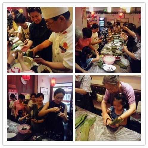 燕喜堂师傅教九三学社社员包粽子