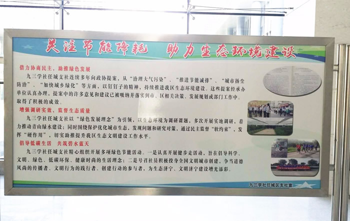 2018年6月11日至17日是第28个全国节能宣传周,九三学社任城区支社参加了以“节能降耗,保卫蓝天”为主题的节能宣传活动,专门制作了节能宣传展板,重点介绍了支社在民主协商、监督调研、倡导践行等方面为生态文明建设发挥的作用。同时,九三学社任城区支社积极响应活动倡议,号召社员行动起来,切实践行绿色低碳的办公模式和出行方式,为生态济宁、文明济宁建设增光添彩。(九三学社济宁市委 张丽丽)