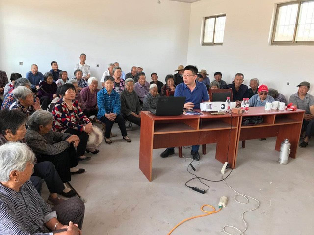 西海岸新区中心医院神经外科薛成江主任自带投影仪,在简陋的村委会议室里为找字庄村的老年人进行了图文并茂的高血压、冠心病、糖尿病防治知识讲座。大爷大妈们听得可认真了。上午近两个小时的精彩授课,大爷大妈们收获满满,意犹未尽,边走边相互交流着,“原来饭菜不能太咸、太油,也不能太甜……” 王主委被村书记的热情和村民们对知识的渴求所感动,表示以后还会举办此类公益活动,发挥九三人才优势,发扬九三奉献精神,为需要帮助的人提供物质和精神食粮。