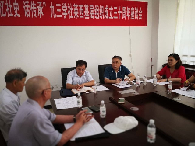 6月27日,九三学社青岛市莱西市委员会召开“忆社史、话传承” 座谈会,纪念九三学社莱西市基层组织成立三十周年。九三学社青岛莱西市委班子成员、受邀老社员、部分新社员以及预备社员参加座谈会。
