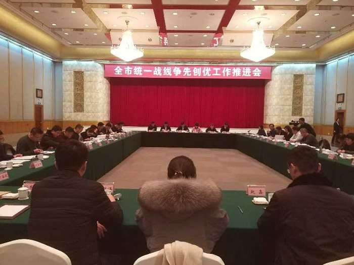 12月12日,中共威海市委统战部举行了全市统一战线争先创优现场观摩活动,并于12月13日在威海市东山宾馆召开了全市统一战线争先创优工作推进会。推进会由常务副部长姜文秋主持,中共威海市委常委、统战部长戴龙成作了重要讲话。各区市、开发区统战部长、各民主党派主委和驻会负责人参加了会议。九三学社威海市委主委贾国哲、副主委兼秘书长曲兴参加了会议。  会上,各区市、开发区、各民主党派先后就统战工作问题短板、明年工作打算及亮点等工作做了汇报。会议分统战部组、民主党派组2个组别公布了2018年度先创优项目优秀等次。九三学社威海市委的争先创优项目“理论的力量—九三学社威海市委参政党理论研究成就主题展”,被评为优秀争先创优项目,威海市7个民主党派中仅有2个党派获此殊荣。 九三学社威海市委参政党理论研究在全省全国已经成为一个品牌和一面旗帜。“理论的力量—九三学社威海市委参政党理论研究成就主题展”通过展板、专题片、实物等形式,展现了九三学社威海市委参政党理论研究不断发展创新的丰硕成果。主题展于10月中旬正式开展以来,迎来了省内外、社内外多批参观团队和人员,九三学社山东省委公众号将专题片予以推送,引发九三学社中央、九三学社省委的高度重视和参观者学习讨论的浓厚兴趣,正成为中国特色社会主义参政党理论研究学习交流新的阵地。主题展在全国民主党派中尚属首次。(曲兴)