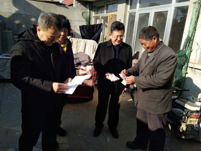 1月18日,威海市统一战线赴山马刘村开展了“送温暖 过好年”慰问活动,中共威海市委统战部常务副部长姜文秋、副部长程晓军,九三学社威海市委副主委曲兴、赵宜楠等一行7人看望了困难群众,送上了慰问品,并致以新春的祝福。  临港区黄岚办事处山马刘村是中共威海市委统战部、九三学社威海市委的扶贫村,此次慰问活动,为该村赠送了426袋大米,另外赠送了牛奶和食用油等慰问品,价值近3万元。中共威海市委统战部常务副部长姜文秋、副部长程晓军、九三学社威海市委副主委曲兴、赵宜楠分头走访了5户贫困家庭,详细询问了困难群众的生活情况、身体状况,其乐融融地拉起了家常,群众连声感谢中共威海市委统战部、九三学社威海市委多年来的帮助和支持。