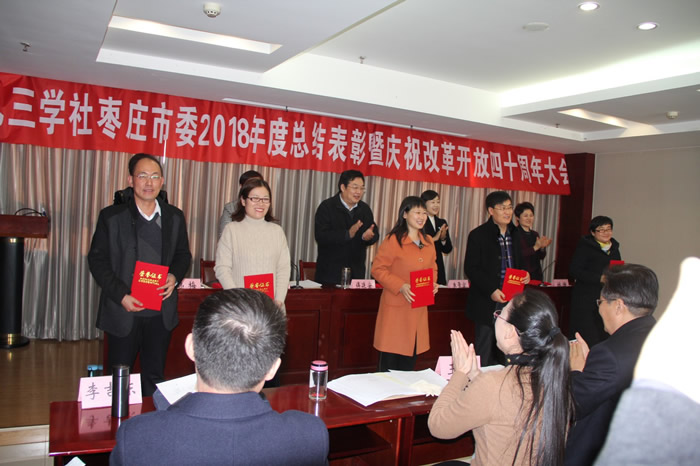 2019年1月21日下午,九三学社枣庄市委2018年度总结表彰暨庆祝改革开放四十周年大会在添祥酒店召开。九三学社枣庄市委主委、市政协副主席付廷安出席会议并讲话。九三学社市委委员及各基层负责人、九三学社枣庄市优秀社员参加会议。