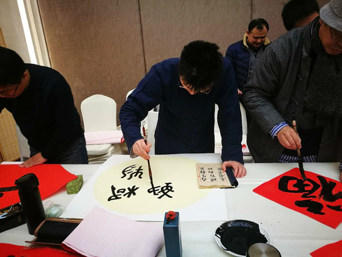 会后,九三书画院举办了新春笔会,书画家们现场为社员写春联、写福字,创作书画作品50余幅,为大家送上新年的祝福。(社济宁市委 李重阳)