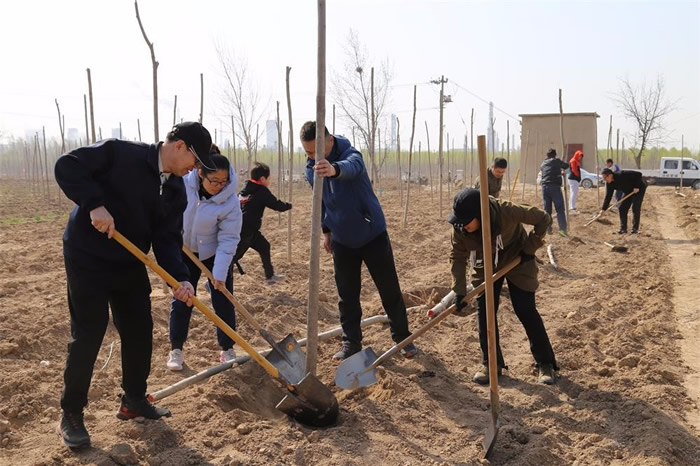 春回大地,万象更新。为积极响应市委市政府“绿满德州·生态美市”号召,进一步增强德州九三活力和社员团结协作精神,3月24日上午,九三学社德州市委组织70多名社员、入社积极分子及其家属,到运河经济开发区开展义务植树活动,种植白蜡200多棵。市人大常委会副主任、九三学社德州市委主委钟玲参加活动。 植树现场呈现了一幅忙碌有序的劳动景象,钟主委与社员们一起将一棵棵树苗植入树坑,铲土填坑、挥锹培土,每道工序都一丝不苟、认真细致,齐心协力种下一棵棵树苗,呈现出一片浓浓春意。(社德州市委 王海龙)