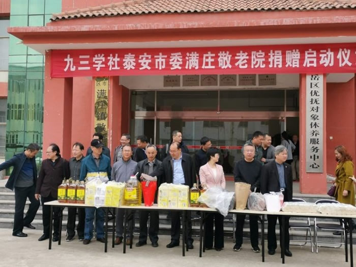 2019年4月27日,上午十点,由九三学社泰安市委组织的爱心团队一行20余人,来到满庄康年银龄颐养院,开展养老敬老的爱心捐赠活动。中共泰安市委统战部调研员薛其福,九三学社市委副主委孙启凯,岱岳区政协副主席,九三学社市委副主委肖玲,九三学社泰安市委秘书长刘彦涛出席活动仪式。