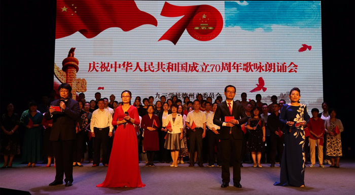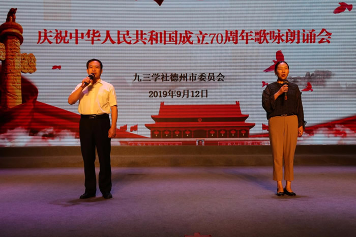 五千年的文明积淀,70年的辉煌历程,乘着梦想,一路凯歌。9月12日上午,九三学社德州市委举办庆祝新中国成立70周年歌咏吟诵会,德州市人大常委会副主任、社德州市委主委钟玲,德州市纪委监委第七派驻组组长王文远参加活动。 活动以“红色”为主题,社员们通过情真意切的歌唱、诵读,讴歌了在中国共产党的正确领导下,新中国取得的伟大成就;展现了拳拳爱国之心,殷殷报国之志;表达了对祖国无限的热爱和对中国共产党坚决的拥护。 社员们纷纷表示,必将对祖国的热爱之情化为源源不断的动力,在各自的工作岗位上作出新的更大贡献。