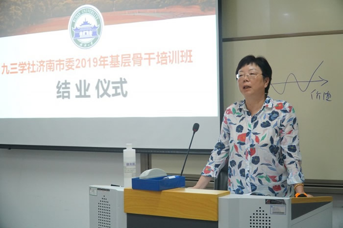 在结业式上,九三学社济南市委二级巡视员陈宁宁指出,这次培训班筹备工作周密、内容丰富合理、学习效果显著。她要求大家一是提高政治站位,夯实共同思想政治基础;二是坚持学以致用,积极履行参政党职能。三是认真抓好落实,推动主题教育活动深入开展。要以此次培训班为契机,勤奋学习、扎实工作,继续发挥好骨干成员的作用,以更加积极的态度和更加饱满的精神,将所学所获运用到实际工作和九三学社事业发展中去,推动全社各项工作再上一个新台阶,为推动我市建设“大强美富通”现代化国际大都市的任务目标贡献智慧和力量。