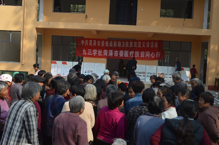 10月13日,为开展好“不忘合作初心,继续携手前进”主题教育活动,九三学社菏泽市委员会在国家扶贫日(10月17日)到来之际,组织社内医疗专家赴菏泽市委统战部第一书记帮包村--牡丹区黄堽镇李先登村开展义诊活动,为精准扶贫、精准脱贫贡献党派力量。