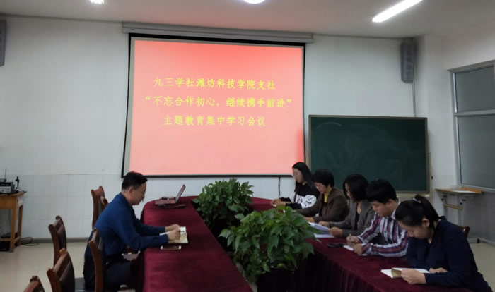 潍坊科技学院支社召开集中学习会议。 (社潍坊市委王兴全)