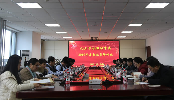 12月7日,九三学社潍坊市委在山东交通职业学院举办2019年度新社员培训班,深入学习贯彻习近平新时代中国特色社会主义思想、中共十九大、十九届四中全会精神,专题辅导社章社史,开展“社员之家”平台宣传推广。九三学社潍坊市委副主委王建良出席并讲话,九三学社市委秘书长岳建利主持,2019年度新社员20人参加了培训。