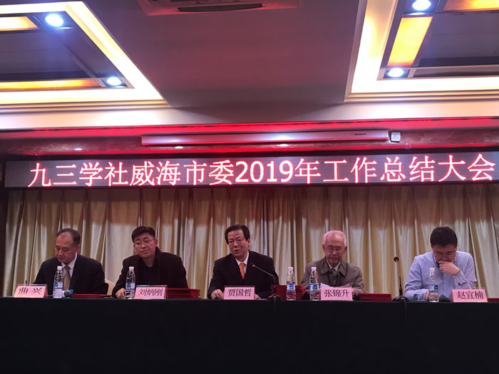 12月28日上午,九三学社威海市委2019年工作总结大会在威海市阳光大厦隆重召开。100余名社市委领导及社员参加了会议,中共威海市委统战部副部长刘炳刚出席会议并作重要讲话。各支社主委和青工委分别作了2019年工作总结和交流。贾国哲主委作了九三学社威海市委2019年工作总结和2020年工作安排。 贾国哲主委作总结讲话时指出,2019年,社威海市委在社山东省委和中共威海市委正确领导下,坚持以习近平新时代中国特色社会主义思想为指导,紧密围绕中心,认真履行职能,全面加强中国特色社会主义参政党建设,各项工作取得了新成绩:一是深入开展主题教育活动,思想政治建设全面加强;二是深入进行参政党理论研究,为加强参政党建设提供理论支撑;三是加强调查研究,职能能力显著增强;四是开展社会服务工作,树立良好社会形象;五是加强组织和制度建设,各项制度和规范化水平明显提升。贾国哲主委在肯定成绩的同时也提出了工作中存在的问题和不足:履职能力和积极性有待提高,工作机制和制度有待健全全社力量有待整合。社会服务工作有待加强。思想建设、理论学习制度落实不到位,学用结合不紧密,各支社组织学习教育活动开展不平衡。一些支社凝聚力、执行力、落实力比较弱,活动次数比较少、效果差。机关干部联系支社和社员不够密切,工作主动性、创造性有待加强。对以上存在的问题,必须高度重视,在调查研究的基础上制定有针对性的工作举措,逐步加以解决。 贾国哲主委明确了九三学社威海市委2020年的努力方向:一是深入学习贯彻中共十九届四中全会精神,巩固和扩大主题教育活动成果;二是做好思想宣传、理论研究和学习教育工作;三是切实履行职能,全面提高议政建言水平和实效四是加强组织制度建设推进组织制度建设规范化。2020是全面建成小康社会的决胜之年是“十三五”规划的收官之年也是九三学社创建75周年。九三学社威海市委将以习近平新时代中国特色社会主义思想为指导,更加紧密团结在以习近平同志为核心的中共中央周围,不忘合作初心,继续携手前进,紧紧围绕“五位一体”总体布局和“四个全面”战略布局、围绕坚持和完善中国特色社会主义制度、推进国家治理体系和治理能力现代化,发挥自身优势、深入调查研究着力做好凝心聚力、议政建言、服务大局各项工作,全面加强中国特色社会主义参政党建设,为实现“精致城市幸福威海”和中华民族伟大复兴作出新贡献,以优异成绩向九三学社创建75周年献礼。