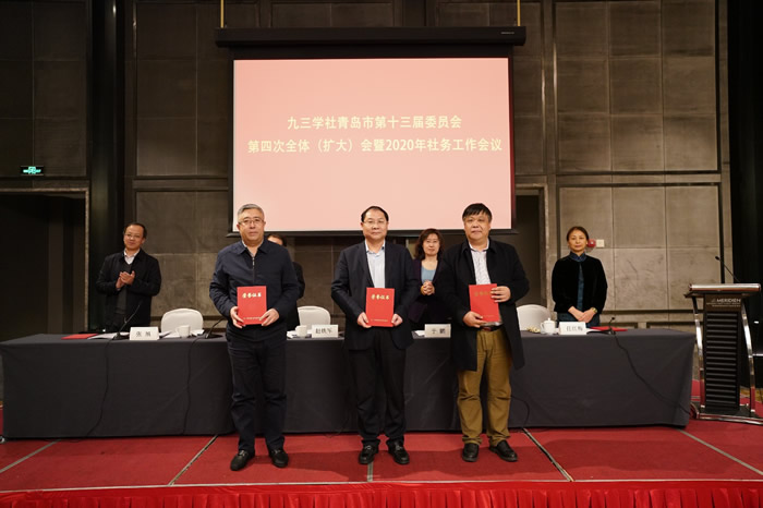2019年12月20-21日,九三学社青岛市委在青岛西海岸隆和艾美酒店召开九三学社青岛市委十三届四次全体(扩大)会暨2020年社务工作会议。青岛市政协副主席、九三学社青岛市委主委赵铁军,中共青岛市委统战部一级巡视员王振海,社市委副主委于鹏、张旭,秘书长任红梅,副巡视员王均华出席会议。 会议传达学习了中共十九届四中全会精神、九三学社中央十四届三中全会和九三学社山东省七届四次全委会议精神,审议通过了常委会工作报告、监督委员会工作报告及相关决议,进行了社市委领导班子及班子成员述职及民主评议,对2019年度先进基层组织、优秀社务工作者和优秀社员进行了表彰,同时对在参政议政、信息、社会服务、思想宣传、理论研究工作做出成绩的基层组织、专委会和社员进行了单项表彰,对2020年社务工作进行了部署和安排。
