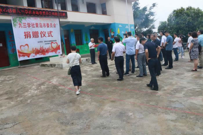 8月3日上午,由九三学社青岛市委员会主办、九三学社青岛市委经济专委会承办的校园“爱心食堂”捐赠仪式在贵州省安顺市关岭县花江镇木工小学举行。九三学社青岛市委主委赵铁军、驻会副主委于鹏、经济专委会主任孙琦等专委会成员一行13人出席了捐赠仪式。关岭县政协主席周建能、县人民政府副县长张炬、县政协副主席汪明华出席捐赠仪式,关岭县政府办、政协办、教育和科技局、投资促进局、扶贫办,花江镇人民政府、花江镇木工村支两委相关负责人、木工小学全体教职工参加捐赠活动。