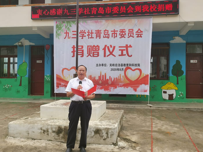 周建能代表全体师生对九三学社青岛市委调研组的真诚爱心表示感谢!他在致辞中指出,近年来,关岭经济稳步发展,教育事业蒸蒸日上,办学条件得到很大的改善,育人环境进一步优化。教育事业的不断发展进步,离不开全体教育工作者的辛勤工作,也离不开社会各界爱心人士、爱心企业的关心和帮助。我们将不忘九三学社青岛市委调研组的善举,这次爱心捐赠,不仅是对我县全体师生的拳拳关爱,更是对我县教育事业的关心和支持,也是教育扶贫的具体表现。 学校全体教职工纷纷表示,一定会铭记九三学社青岛市委员会的关心和帮助,用自己真诚的行动去践行教书育人使命,把家乡的孩子们培养成合格的建设者和接班人。张炬表示,县委、政府将督促相关部门将本次爱心捐赠及考察调研作为工作行动指南,深切感受九三学社青岛市委调研组对我县发展的关心和支持。我们将不忘九三学社青岛市委一如既往的关心关爱,继续加大教育投入、继续加强学校常规管理,在脱贫攻坚收官之年,关岭一定能带领全县人民如期实现全面建成小康社会的美好愿望,过上殷实富足的生活。