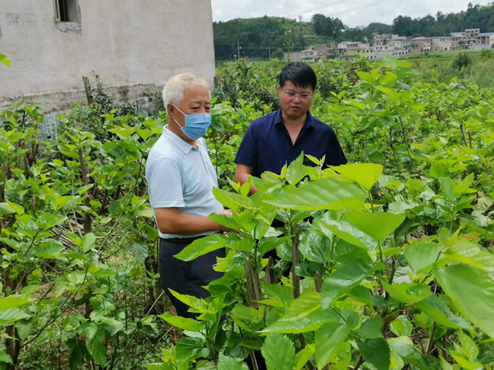 8月5日上午,考察组一行前往旧州古镇、安顺市九三学社社员肖云书的新型生态农业产业扶贫示范园区进行调研,肖云书带领贫困户抱团发展,主要从事“功能性食品桑”的开发、种植、加工与销售,目前产品有:桑叶茶、桑叶面条、桑椹红酒等,通过淘宝、抖音线上带货,带动贫困户就业10000余人。