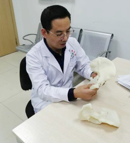 (陈洪杰主任在术前根据3D打印模型研究手术入路及复位和固定方案)