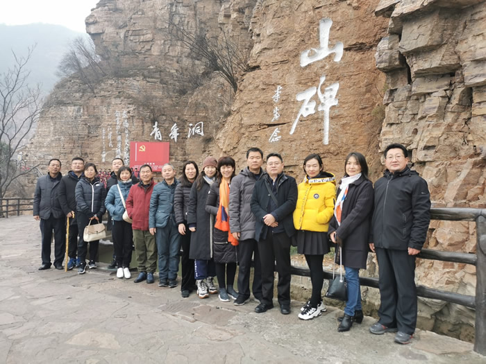 缠绕在太行绝壁的红旗渠,是30万林州人苦干10年创下的人间奇迹。20世纪60年代,林县(今河南省安阳市林州市)儿女靠一锤一钎一双手,以“重新安排林县河山”的胆魄和勇气苦干10个春秋,在万仞壁立、千峰如削的太行山上斩断1250个山头,架设152座渡槽,凿通211个隧洞,建成了全长1500公里的“人工天河”——红旗渠。周恩来总理曾经说过:“中国有两大奇迹,一个是林县红旗渠,一个是南京长江大桥”。红旗渠精神,被浓缩成了16个通俗易懂的字——“自力更生,艰苦创业,团结协作,无私奉献”。大家实地观看了青年洞,心潮澎湃,久久不能平静……进入新时代,红旗渠精神依然是一面永不褪色的伟大旗帜,是我们整个国家发展和社会进步的宝贵精神财富。 第五站 海内存知己,同是九三人——与社安阳市委交流学习