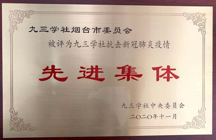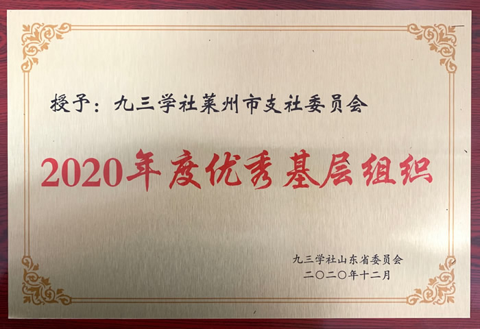 莱州市支社荣获九三学社山东省2020年度优秀基层组织称号。(九三学社烟台市委  仲晓宁)