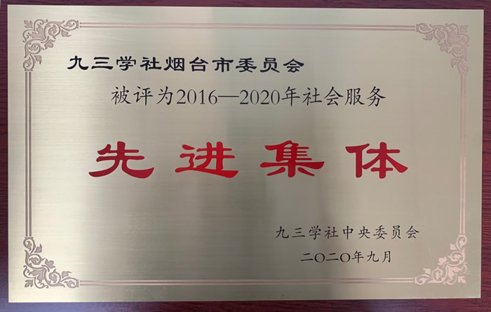 社市委荣获九三学社山东省2020年度组织工作先进集体三等奖。