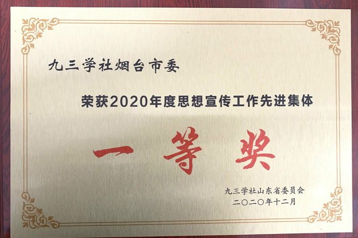 社市委荣获九三学社山东省2020年度思想宣传工作先进集体一等奖。