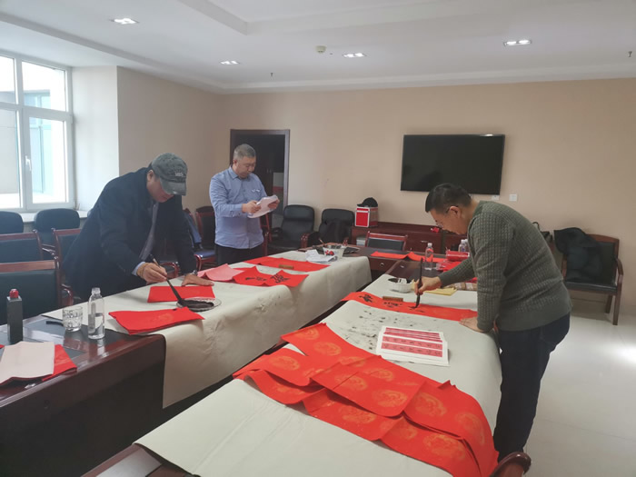 为表达对疫情防治一线医护人员的敬意,2月2日,九三学社烟台市委组织了新春送“福”活动。邀请王宁波、陈学军、孙志忠等3位书法家为可爱的白衣战士书写新春对联。