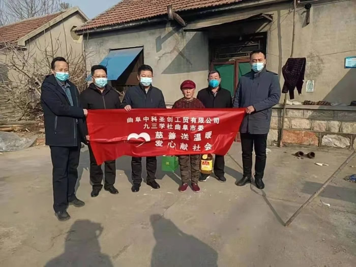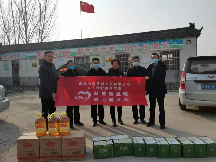 辛丑牛年春节即将到来之际,九三学社曲阜市委联合社员企业曲阜中科圣创工贸有限公司,开展走访慰问贫困户活动。2月7日,社曲阜市委副主委兼秘书长张新忠及部分社员来到姚村镇姚家庄,为11户贫困家庭送上牛奶、食用油等慰问品,详细了解贫困户脱贫和社会保障有关情况,宣传党和政府扶贫惠民政策,向贫困家庭送上节日的祝福。九三学社社员、曲阜中医院肿瘤科主任曹炳龙还对贫困户王建岭术后治愈情况作了随访。
