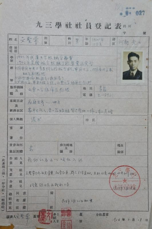 高山仰止,景行行止,虽不能至,然心向往之。文老虽已近百岁高龄,依然关心国家的海洋科研,他的高尚情操,定会在一代又一代九三人中薪火相传。2019年12月,“九三楷模”授奖现场播放的短片概括了文圣常卓越的成就和一路走来的光辉历程—从英俊少年到耄耋老人,人生征途上,你一直都在耕海踏浪。崇德守朴,奖掖后学,如红烛燃烧自己,为他人播撒希望。爱国主义的光辉,科学精神的脊梁,你用六十年的执着,奏响九三人为祖国向海图强的华章。(姜玉兰 冯文波 郭铖 姜玉兰为九三学社青岛市委组宣处处长;冯文波为中国海洋大学新闻中心副编审;郭铖为中国海洋大学文圣常院士秘书) |